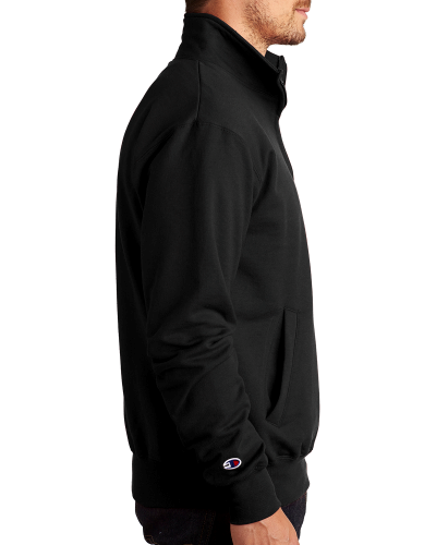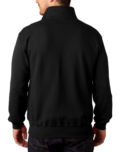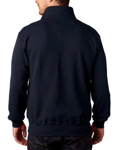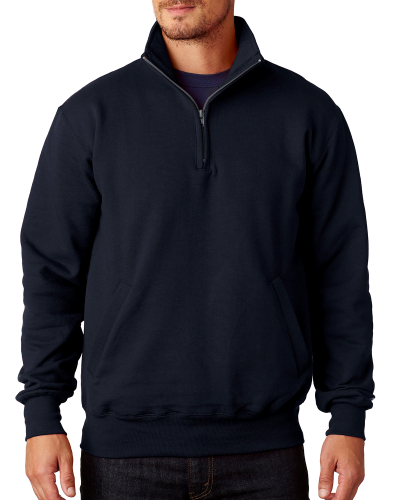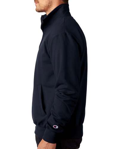 9 oz., 50% cotton, 50% polyester; Made with recycled polyester fibers from plastic bottles; Durable coverstitching throughout; Set-in sleeves; Heavy rib knit waistband cuffs; "C" logo on left cuff; Forward shoulders; Quarter-zip covered zipper; Sewn-in front pockets