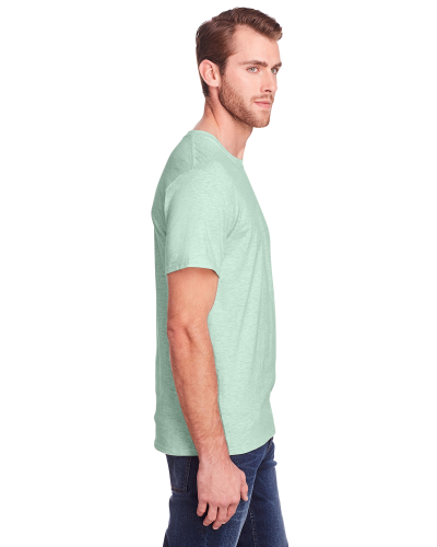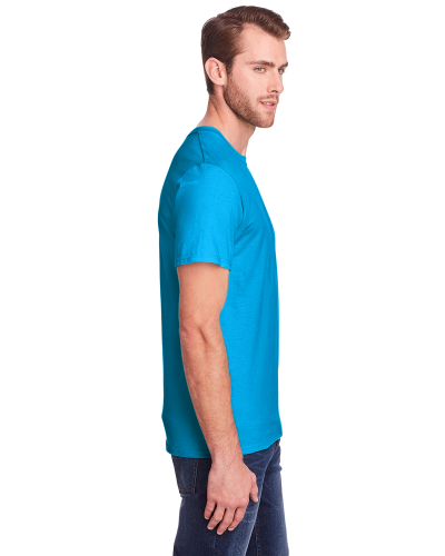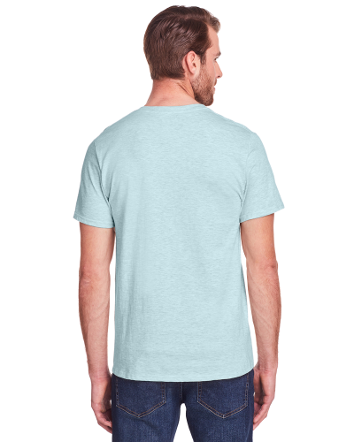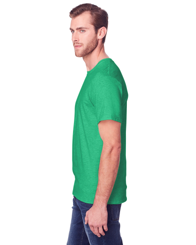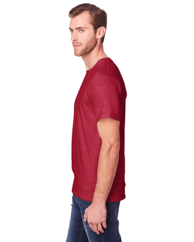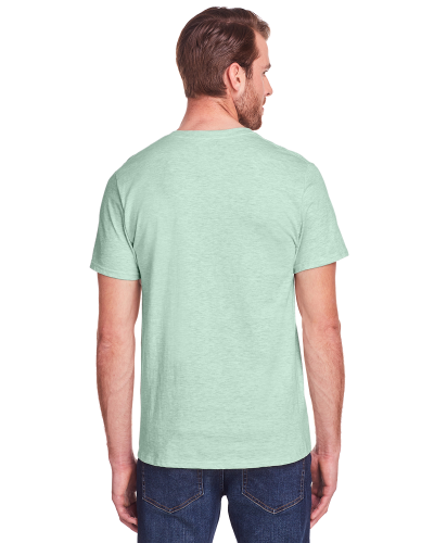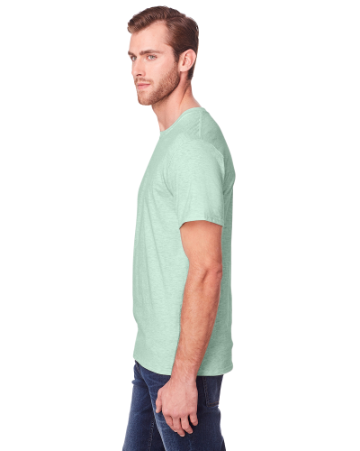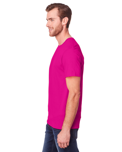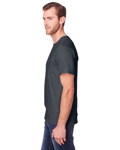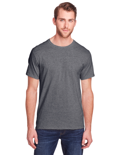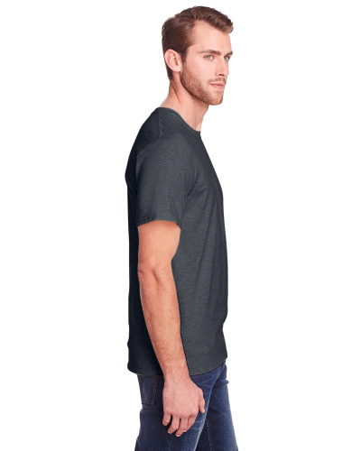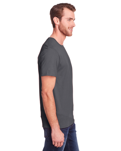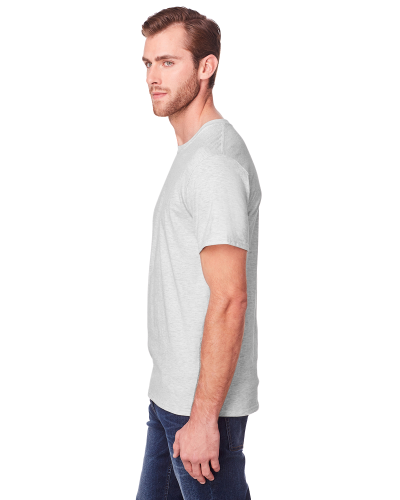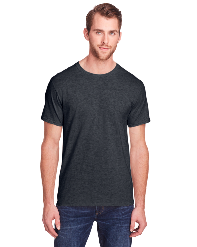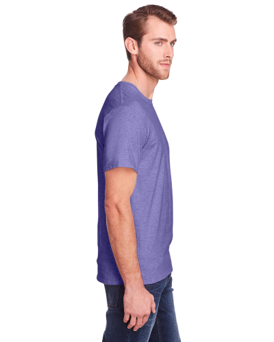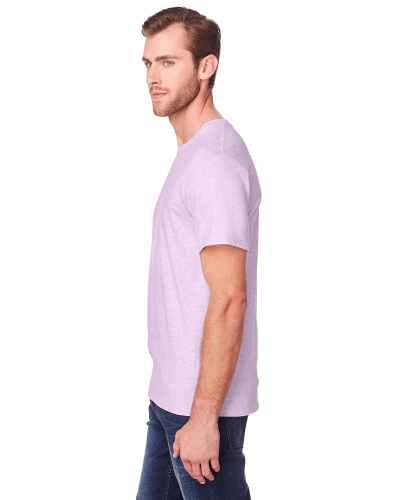 4.6 oz., 100% ringspun cotton preshrunk jersey; Soft, lightweight 30 singles ring-spun cotton; Athletic Heather, Peppered Red Heather 90% ring-spun cotton / 10% polyester; Charcoal Heather, Black Ink Heather, Retro Heather Purple 60% cotton / 40% polyester; Aqua Velvet Heather, Candy Hearts Heather, Mint To Be Heather 99% cotton / 1% polyester; Classic fit with shaped armholes; Seamless 1x1 ribbed collar with two-needle coverstitching on front neck; Two-needle on bottom; Shoulder-to-shoulder taping; Quarter-turned to eliminate center crease; Tear away label