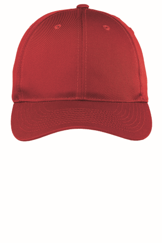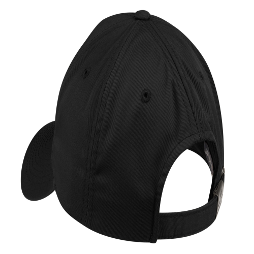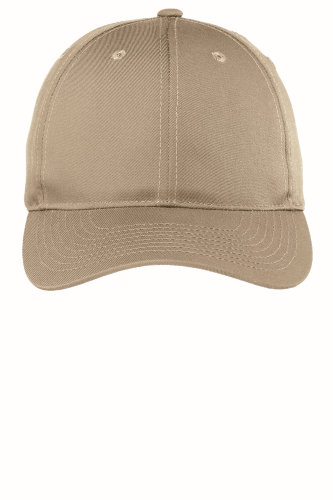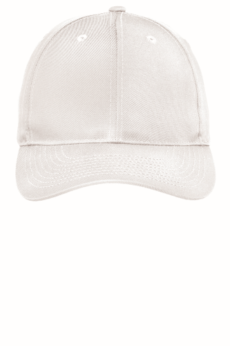 Buckram lining adds shape retention while fine twill lends a classic look. Fabric: 65/35 poly/cotton. Structure: Structured. Profile: High. Closure: Self-fabric slide closure with buckle and grommet.