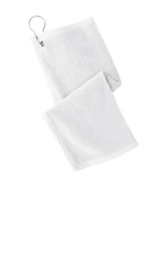 A soft, budget-friendly towel to keep your fingertips dry. 100% cotton terry velour. Fringed for added accent. Silver grommet and hook for convenience Dimensions: 11" x 18", 1.3 lbs/doz.