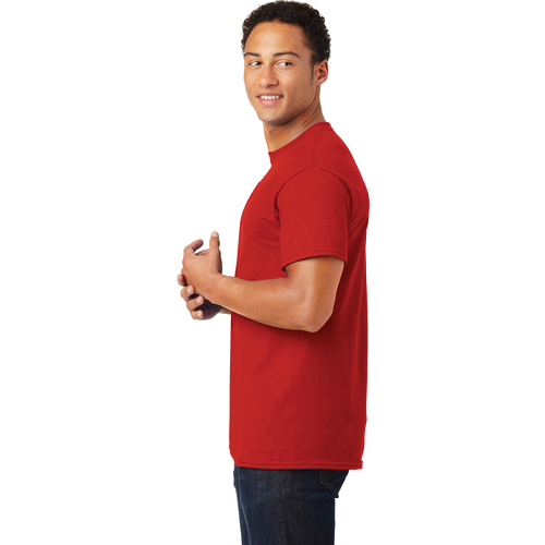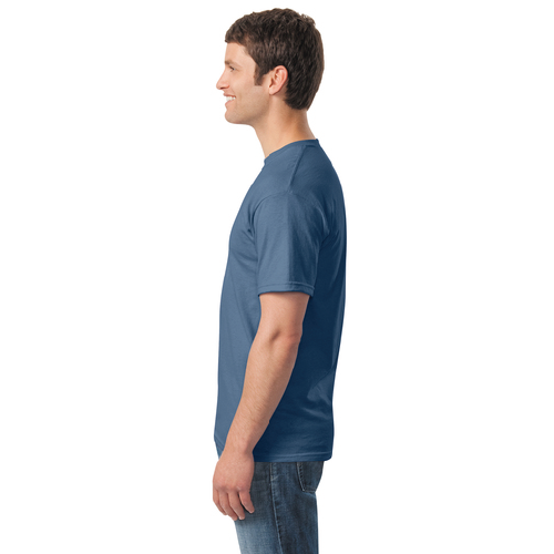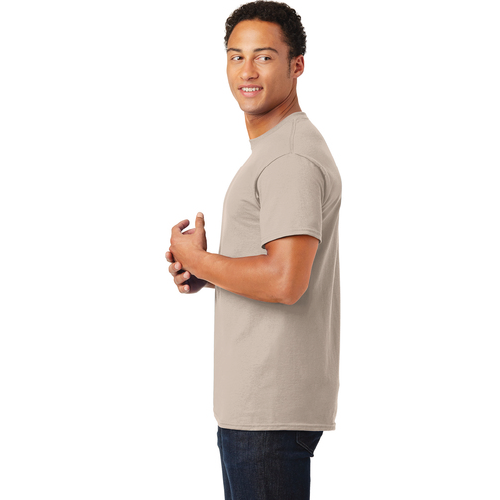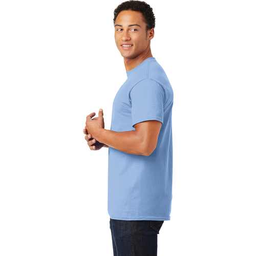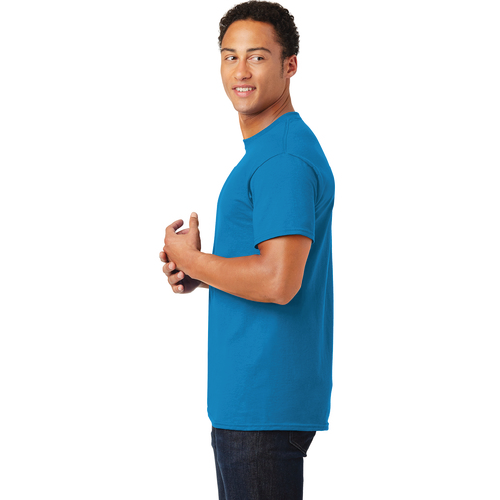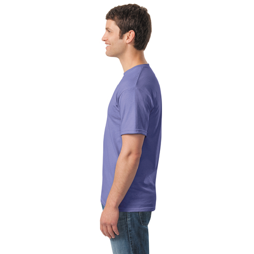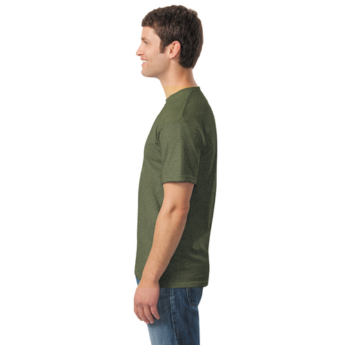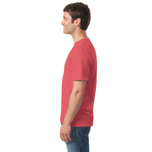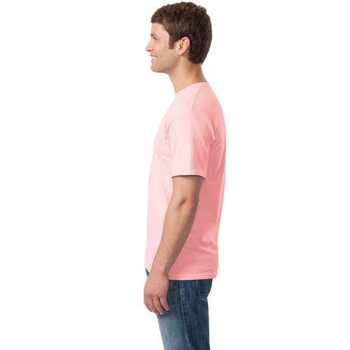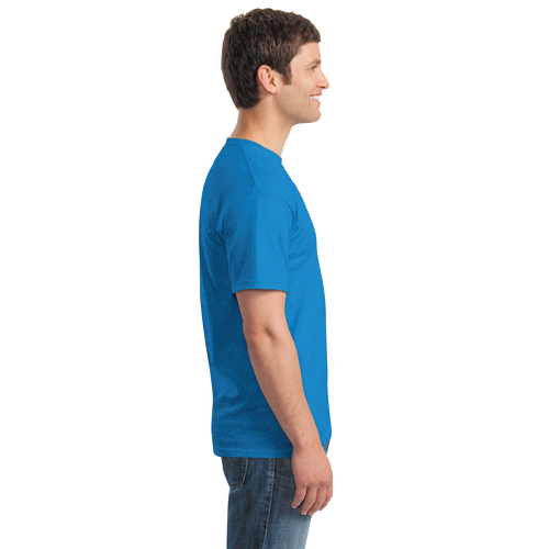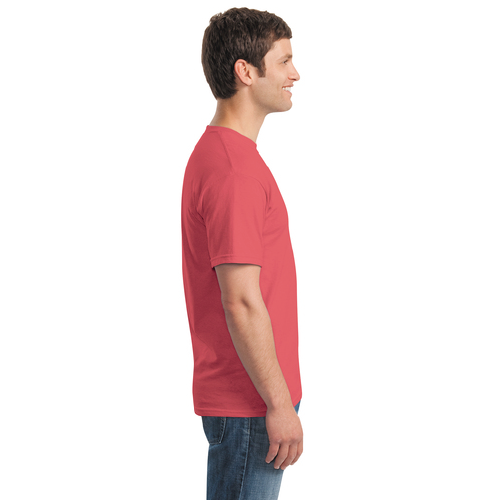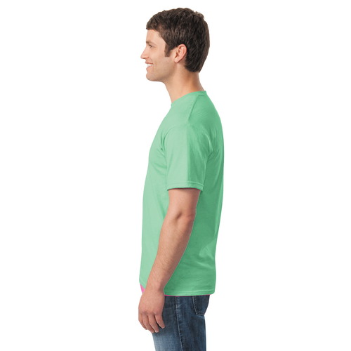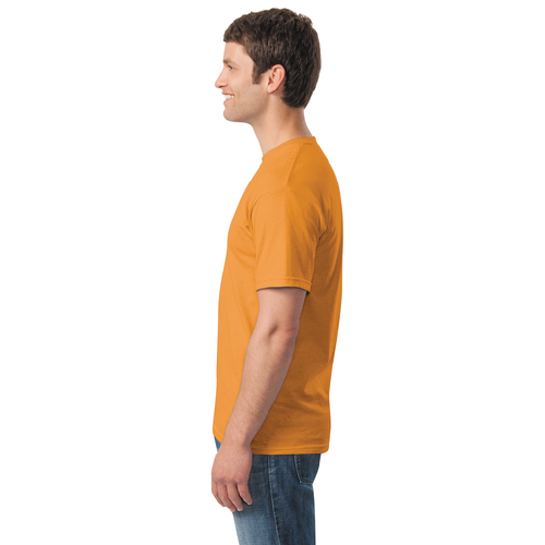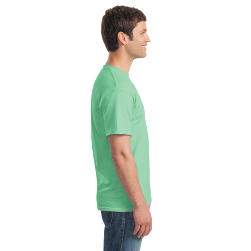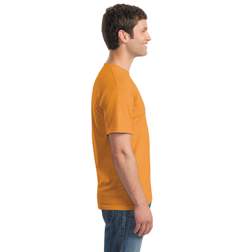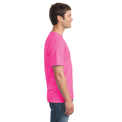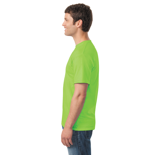 -100% preshrunk cotton; except for neons, heathers, antique, safety colors which are cotton/poly blends.