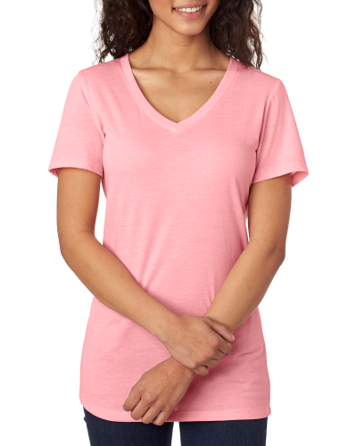 65% polyester, 35% combed ringspun cotton heathers; 3.5 oz.; 40 singles for extreme softness; Fabric laundered for reduced shrinkage; Front coverstitched set-in self-fabric collar; Satin label;