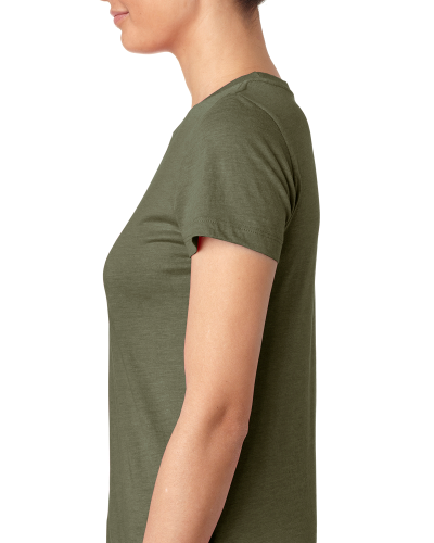 50% polyester/25% combed ringspun cotton/25% rayon jersey; 4.3 oz.; 32 singles; fabric laundered for reduced shrinkage; Front coverstitched 1x1 baby rib-knit set-in collar; Satin label;