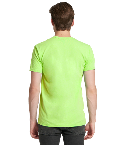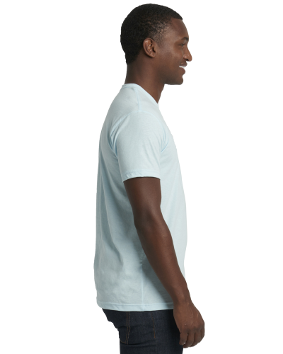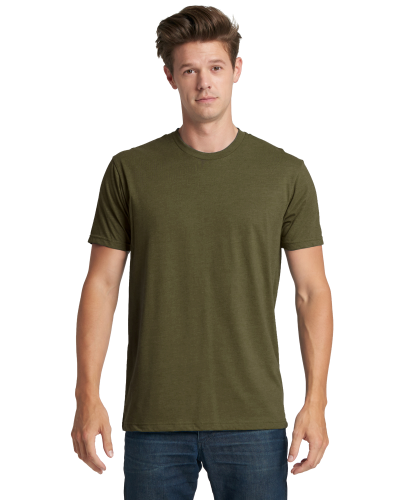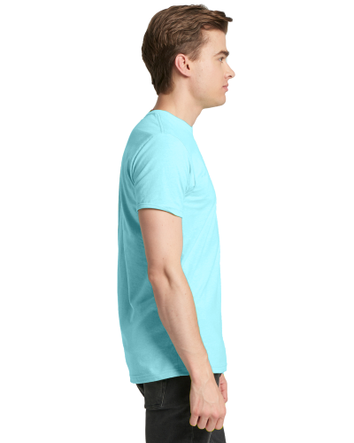 60% combed ringspun cotton/40% polyester jersey; 4.3 oz.; 32 singles; slightly heathered; fabric laundered for reduced shrinkage; 1x1 baby rib-knit set-in collar; Tear-away label;