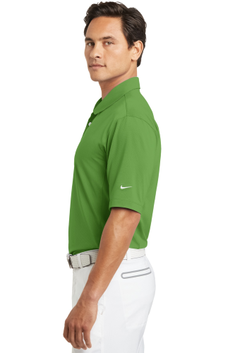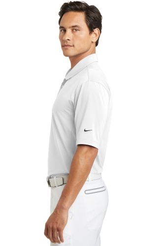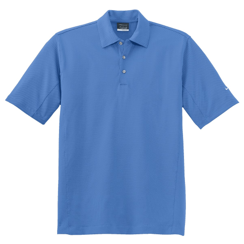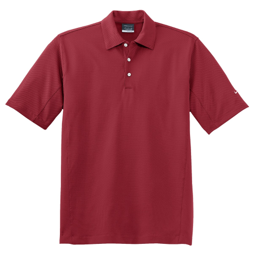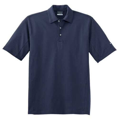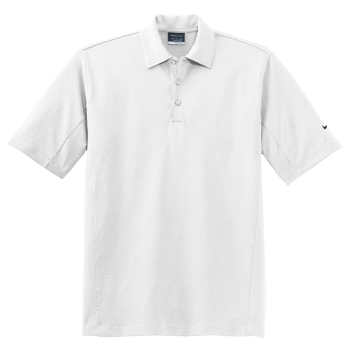 Achieve the pinnacle of performance in this style that pairs a rich diamond texture with Nike Sphere Dry moisture management technology. The ultramodern fabric has a 'bumpy' inside surface that minimizes cling by allowing only a portion of the shirt to come in contact with the skin. Perfect for any occasion, this exceptional shirt is designed for maximum movement and increased air flow. Finished with a self-fabric collar and open hem sleeves. Features a three-button placket. Pearlized buttons are selected to complement the shirt color. The contrast Swoosh design trademark is embroidered on the left sleeve. Made of 6.35-ounce, 89/11 polyester/spandex.