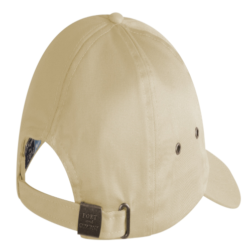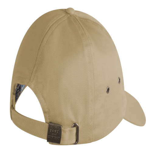 This cap features metal eyelets for ventilation and a classic look. Fabric: 100% cotton twill, Structure: Unstructured, Profile: Low, Closure: Self-fabric adjustable slide closure with buckle and grommet.