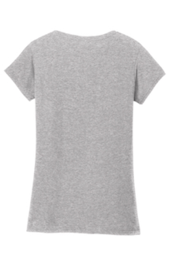 4.5-ounce, 100% ring spun cotton. Junior contoured silhouette with side seam. Mitered rib knit v-neck collar. Taped neck and shoulders. Rolled forward shoulders for better fit. Double-needle sleeves and hem.
