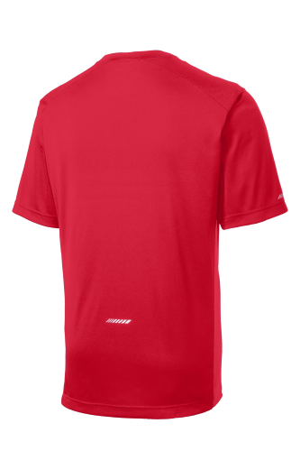 Elevate your performance in this moisture-wicking tee that has reflective details and strategically placed honeycomb insets for ventilation and breathability. 3.8-ounce, 100% polyester interlock body with PosiCharge technology, 3.8-ounce, 100% polyester honeycomb texture insets with PosiCharge technology, Tag-free label, Set-in sleeves.