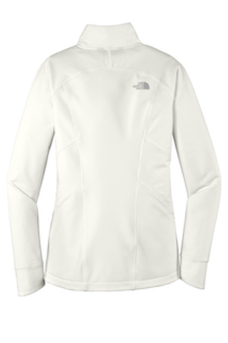 High-density The North Face logo heat transfer on left hem and on right back shoulder