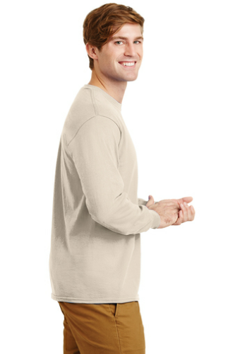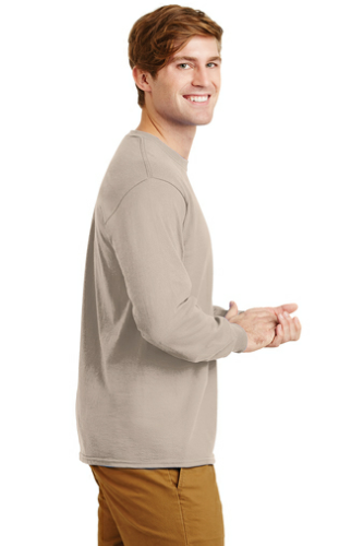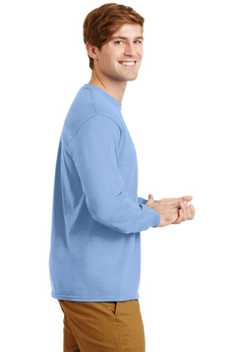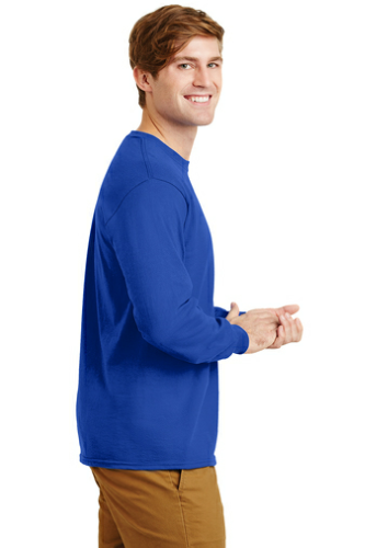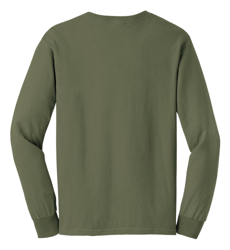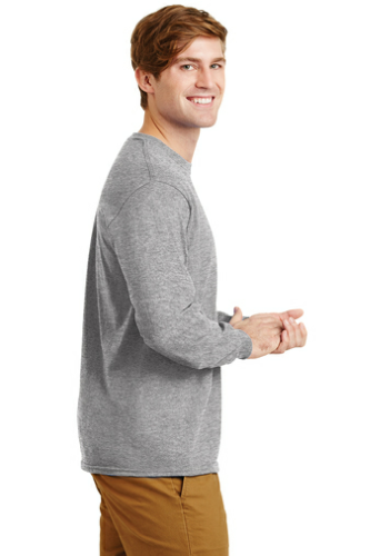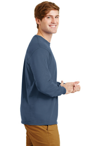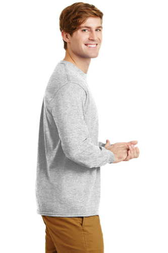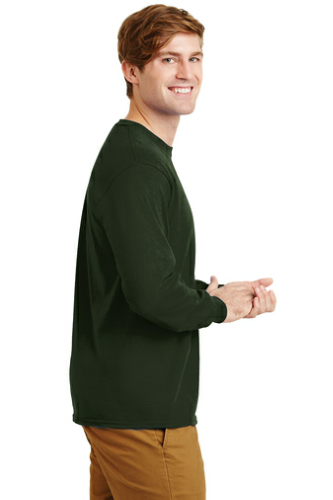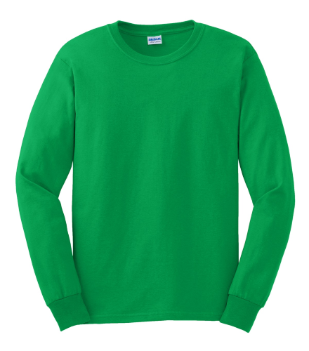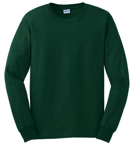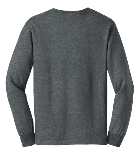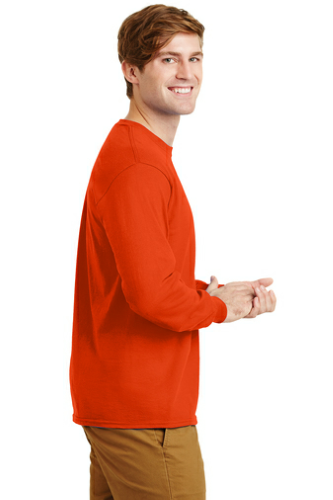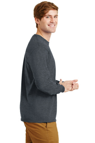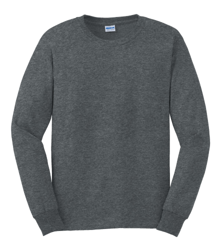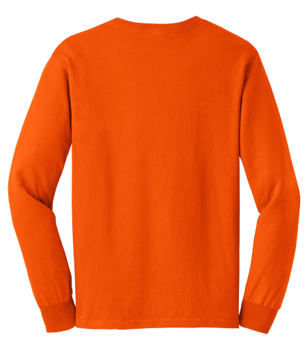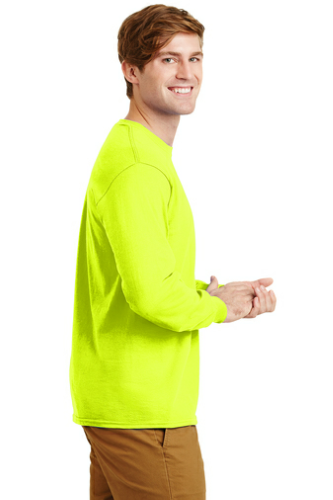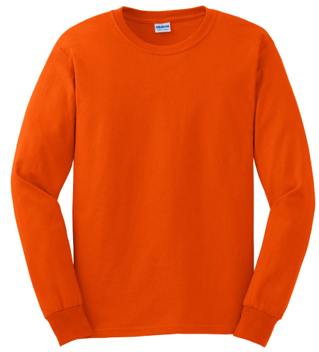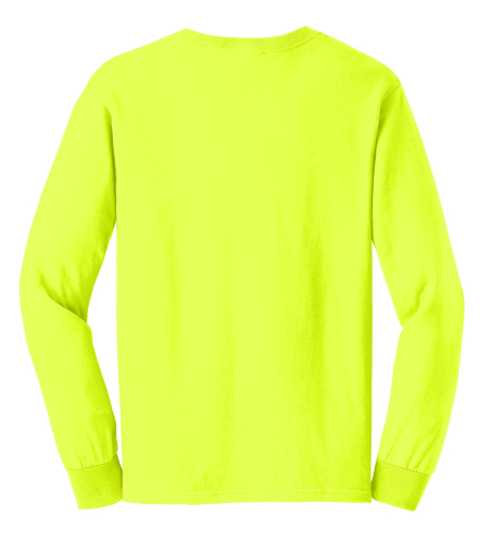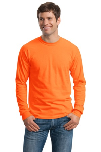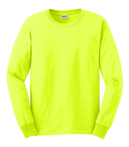 -50/50 cotton/poly (Dark heather, Safety Green, Safety Orange).