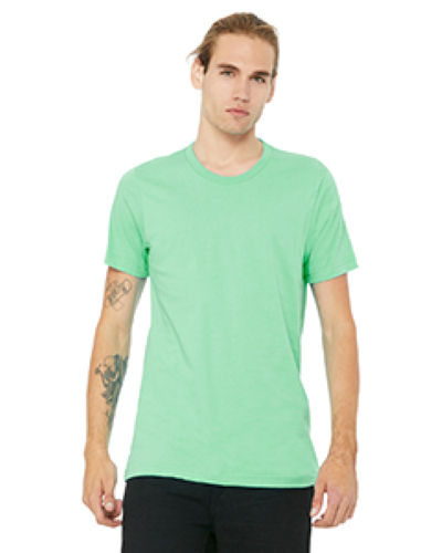 4.2 oz., 52% airlume combed and ringspun cotton, 48% polyester, 32 singles; Prism Colors: 99% airlume combed and ring-spun cotton, 1% polyester; Athletic Heather and Black Heather are 90% airlume combed and ring-spun cotton, 10% polyester; retail fit; unisex sizing; shoulder taping; side-seamed; tear away label; pre-shrunk